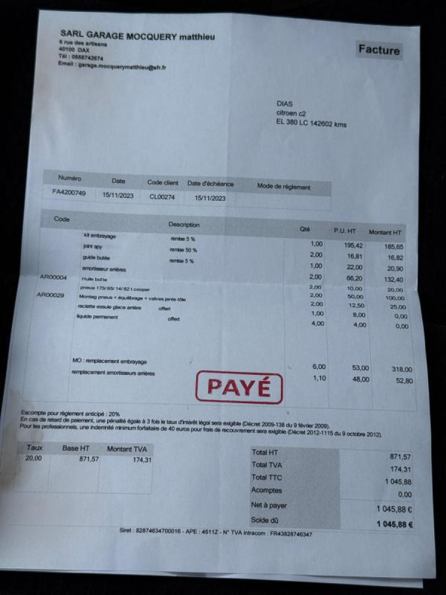 - Révision complète : Vidange moteur + filtres neufs.