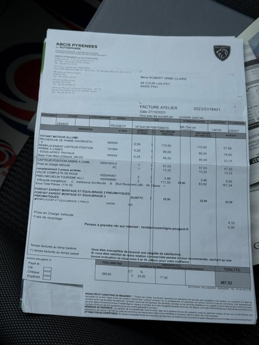 - Révision complète : vidange moteur + filtres neufs